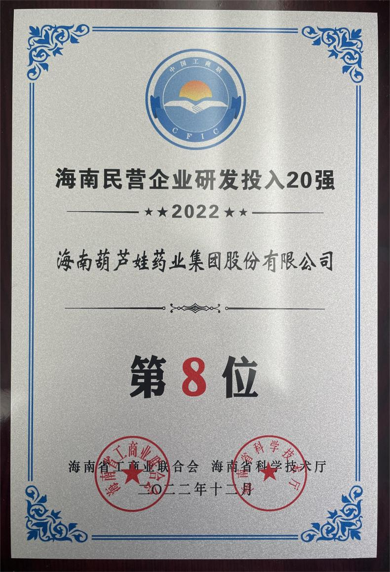 12月23日,2022海南民营企业50强和研发投入20强发布会在海口举行。会上发布了“2022海南民营企业50强”“2022海南民营企业研发投入20强”榜单和分析报告。人生就是博药业再次荣登两榜,在海南民营企业50强榜单中位列第25位,较去年上升8位,这也是公司连续三年登榜;在海南民营企业研发投入20强中位列第8位,较去年上升7位。